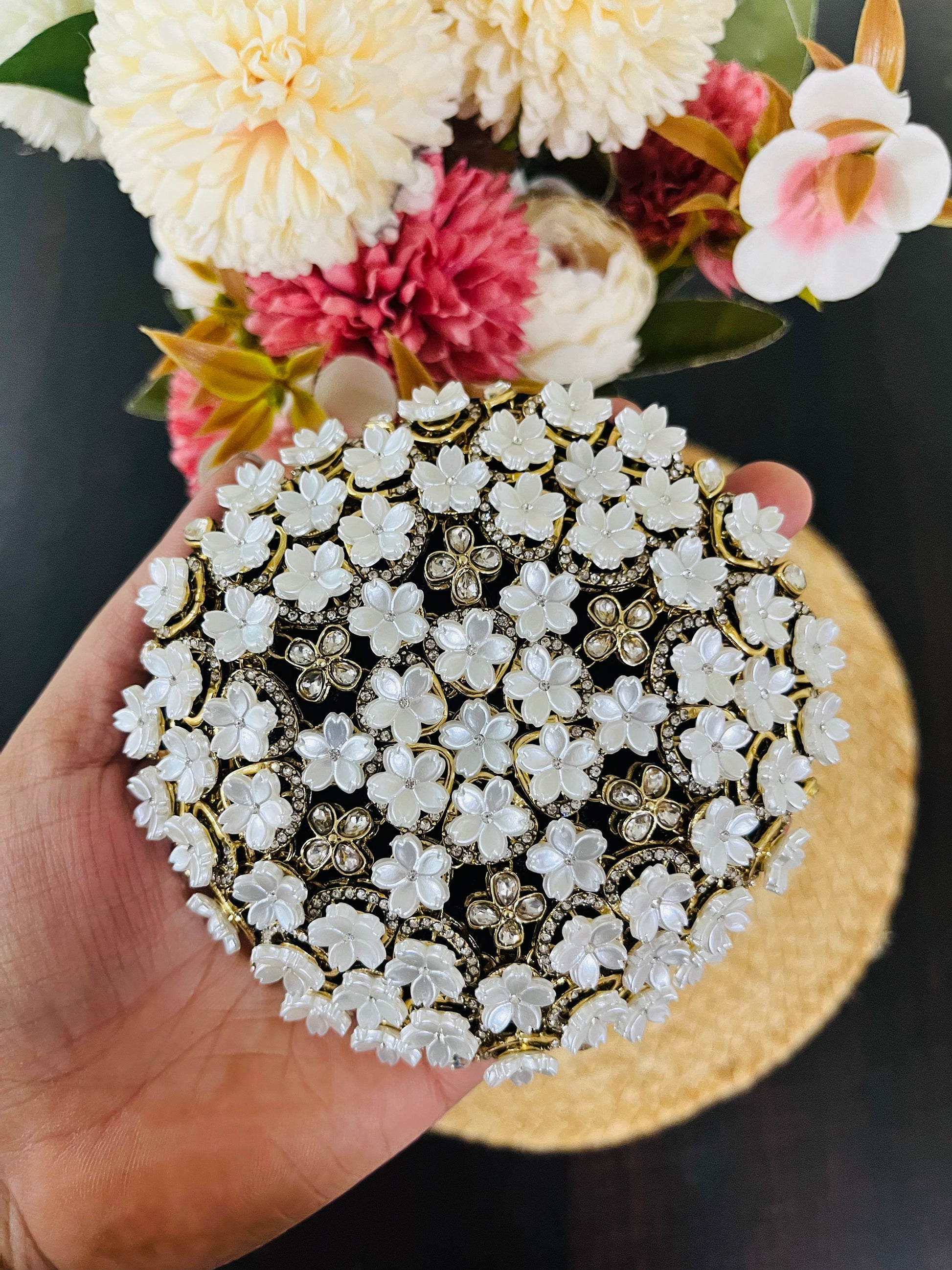 Grey flower applicates Bun (fairytale)