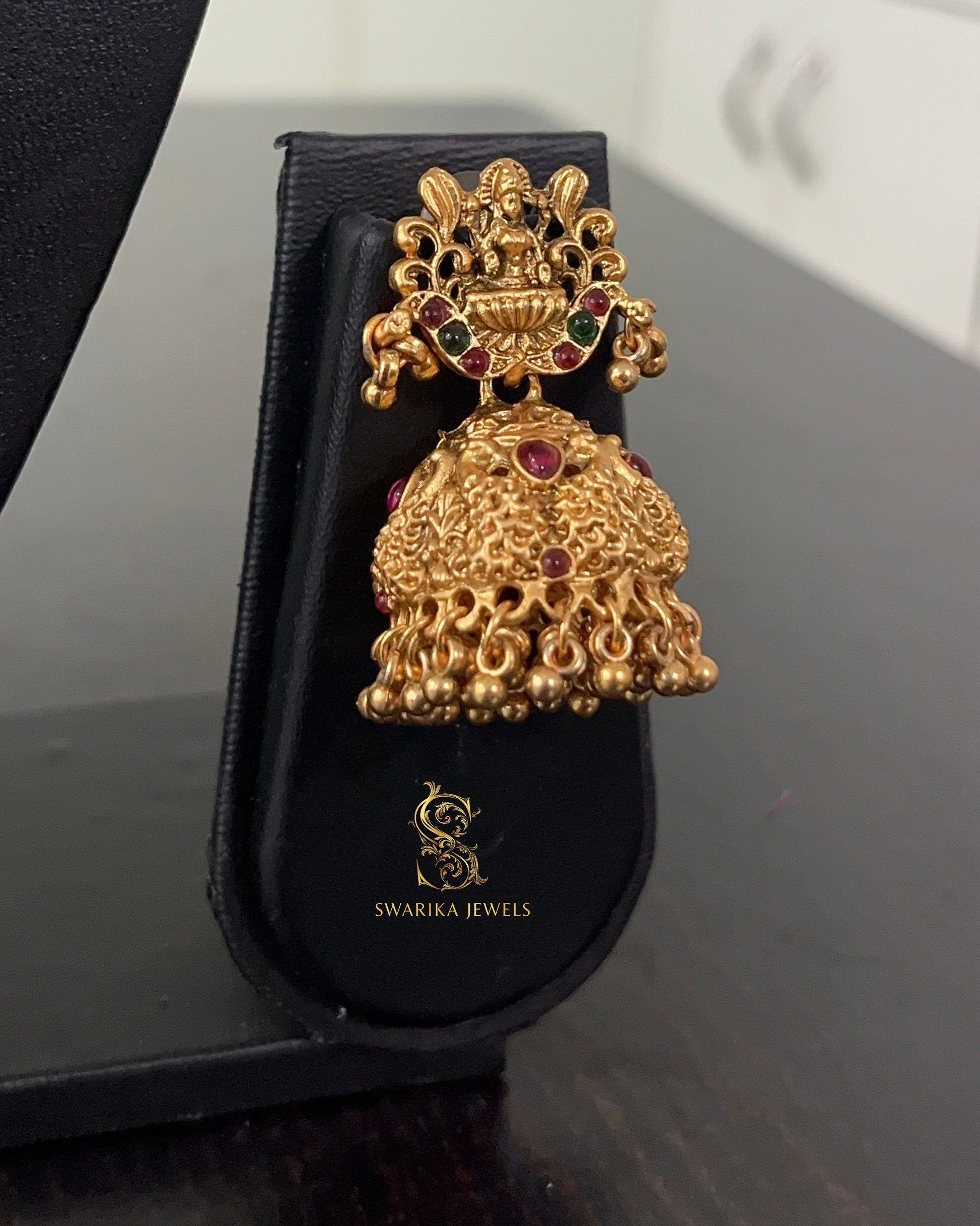 Embrace the epitome of traditional splendor with our Lakshmi Large Haram Set. Categorized under "Haram," this magnificent long necklace features an elaborate design adorned with the revered Goddess Lakshmi, symbolizing prosperity and fortune. Complete with two exquisite matching earrings, this set is crafted to make a truly grand and divine statement for any auspicious occasion.