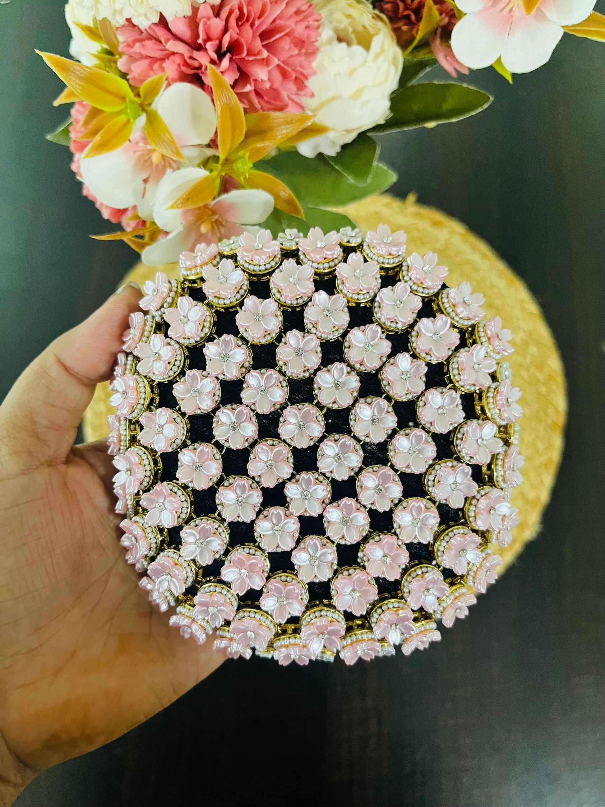 Pink full flower applicate BUN (fairytale)